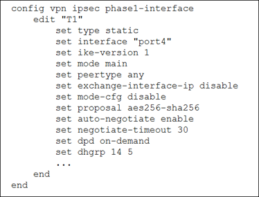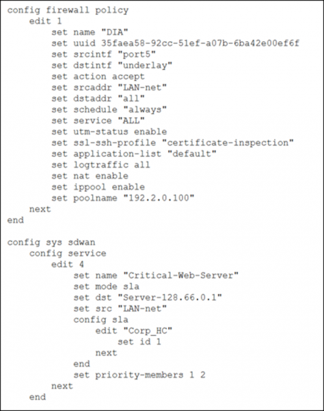 Based on the exhibit, which statement best describes the configuration applied to the FortiGate device?