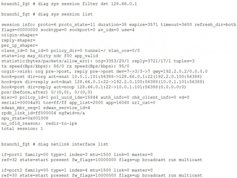 You have configured an SD-WAN rule and a firewall policy. You check the interface list, and the sessions established between a LAN device and a server located on another side.